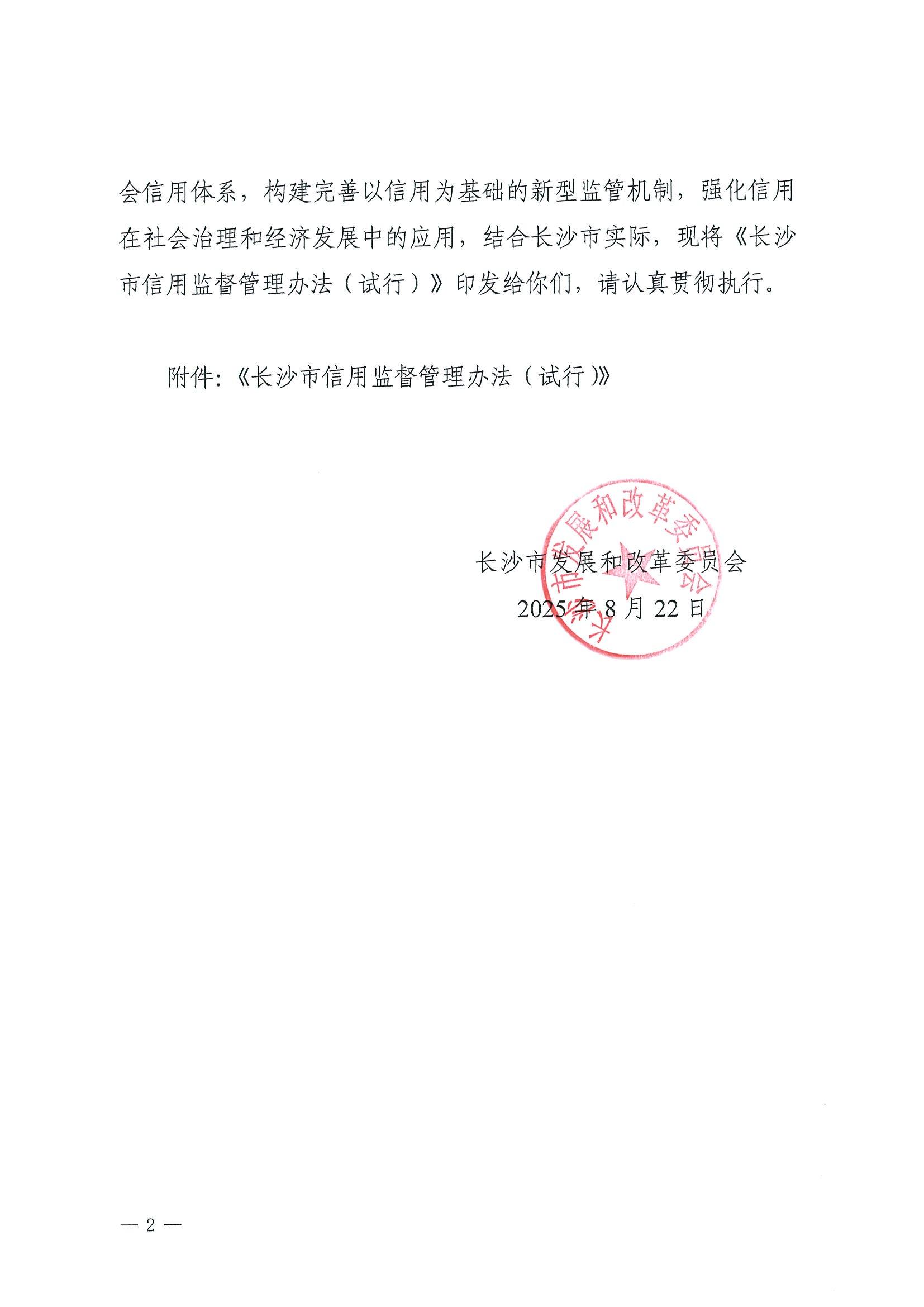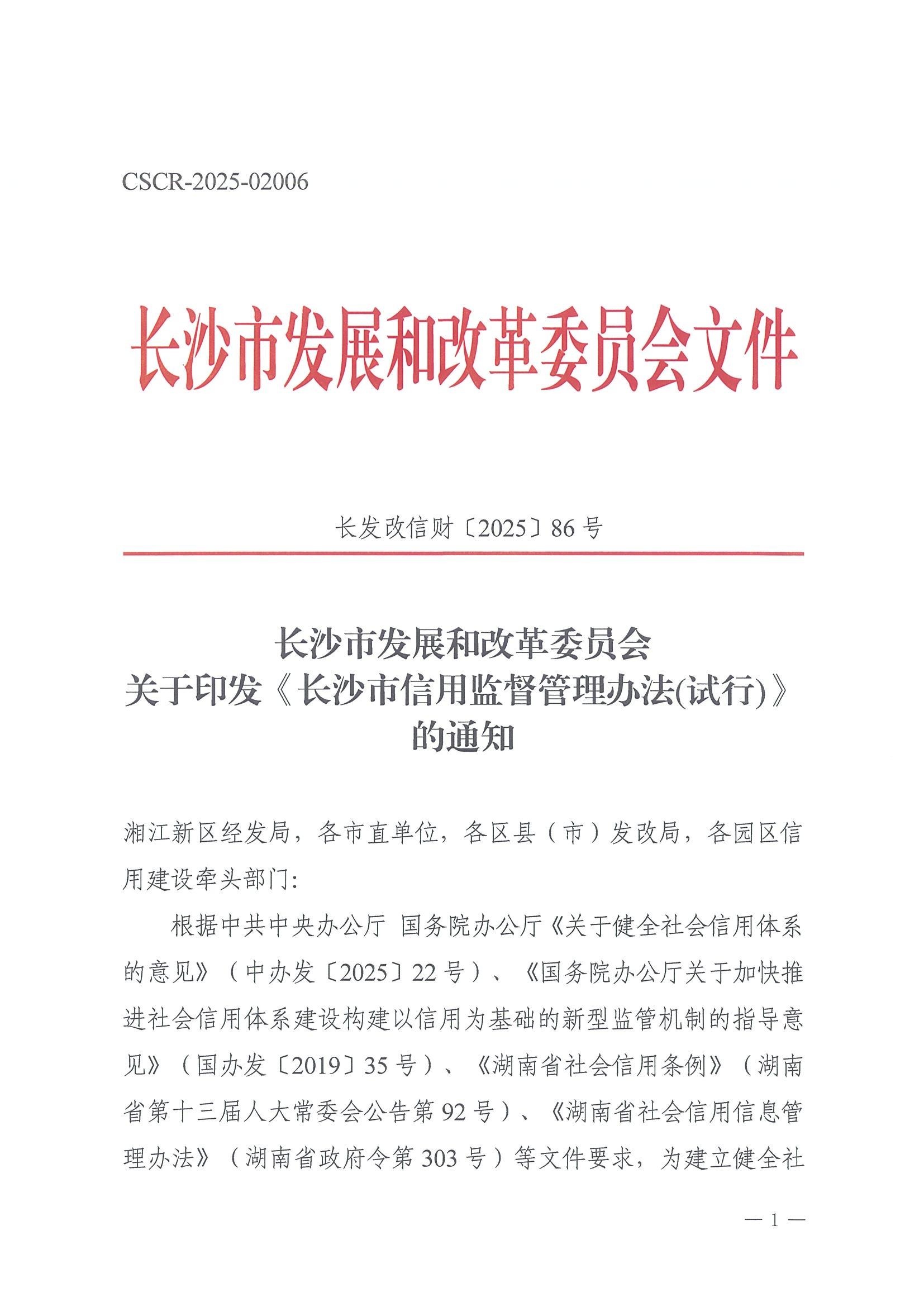 长沙市发展和改革委员会关于印发《长沙市信用监督管理办法(试行)》 的通知