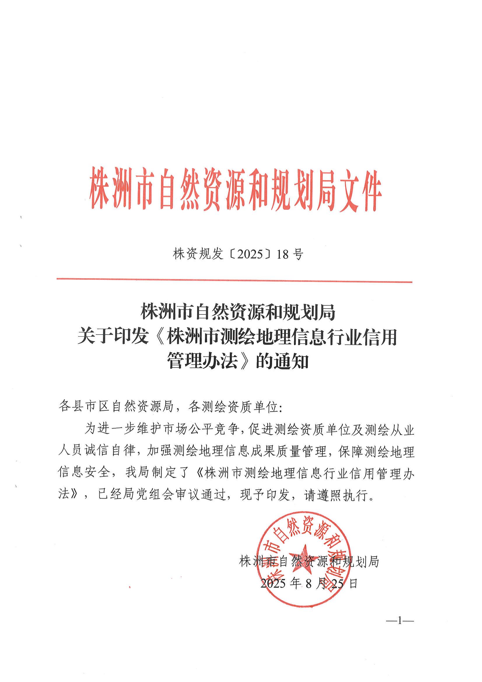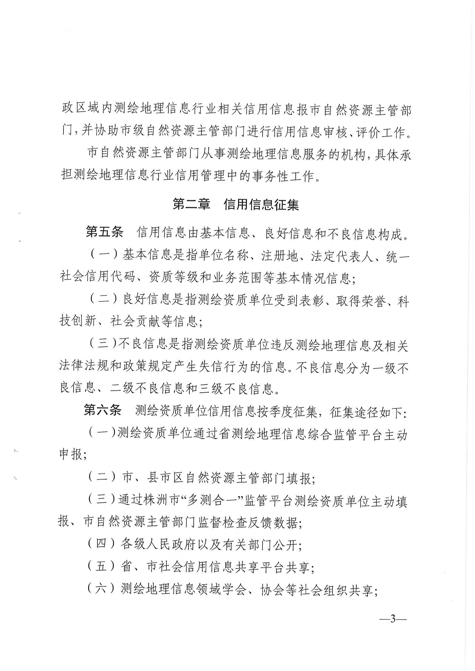 关于印发《株洲市测绘地理信息行业信用管理办法》的通知