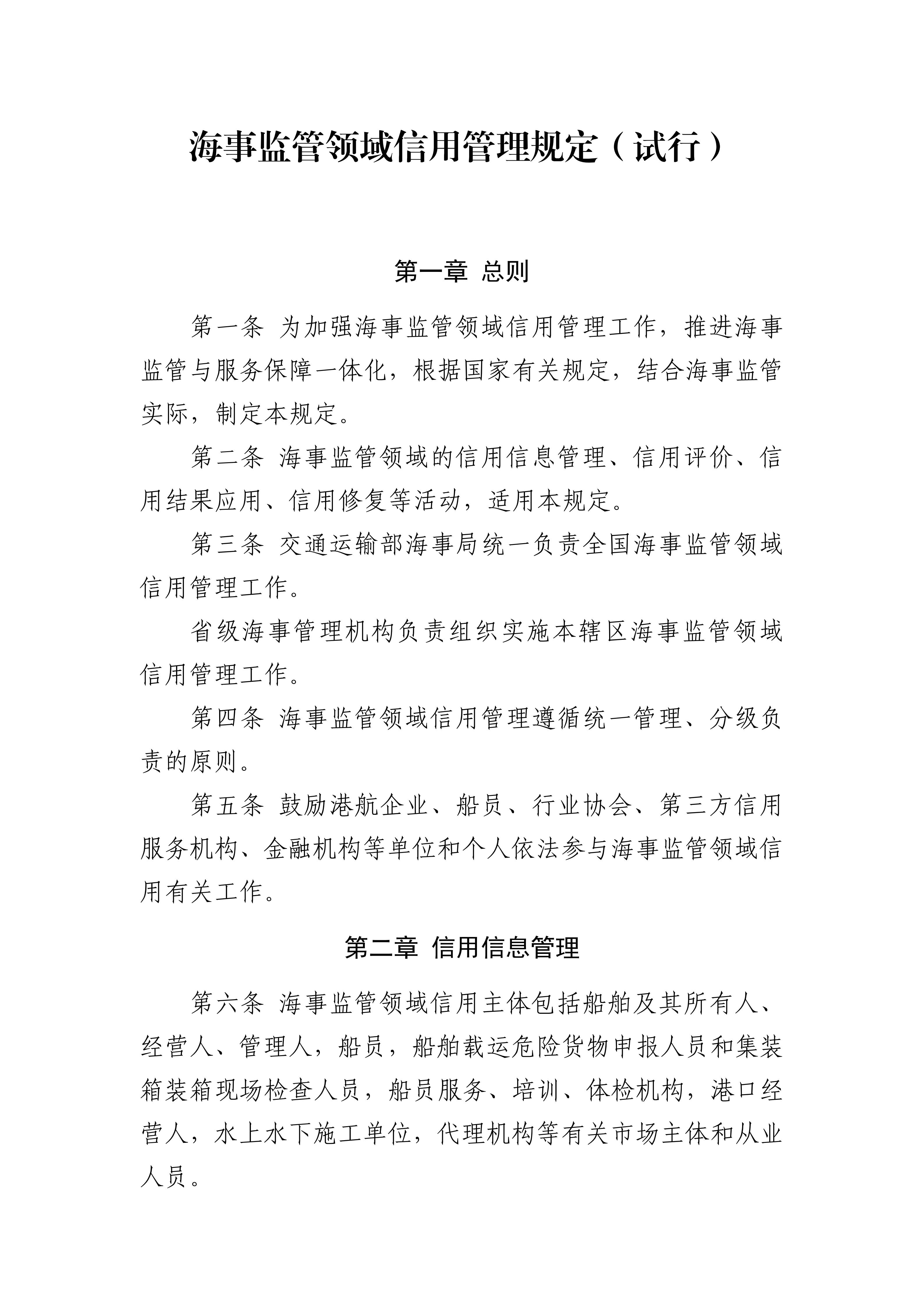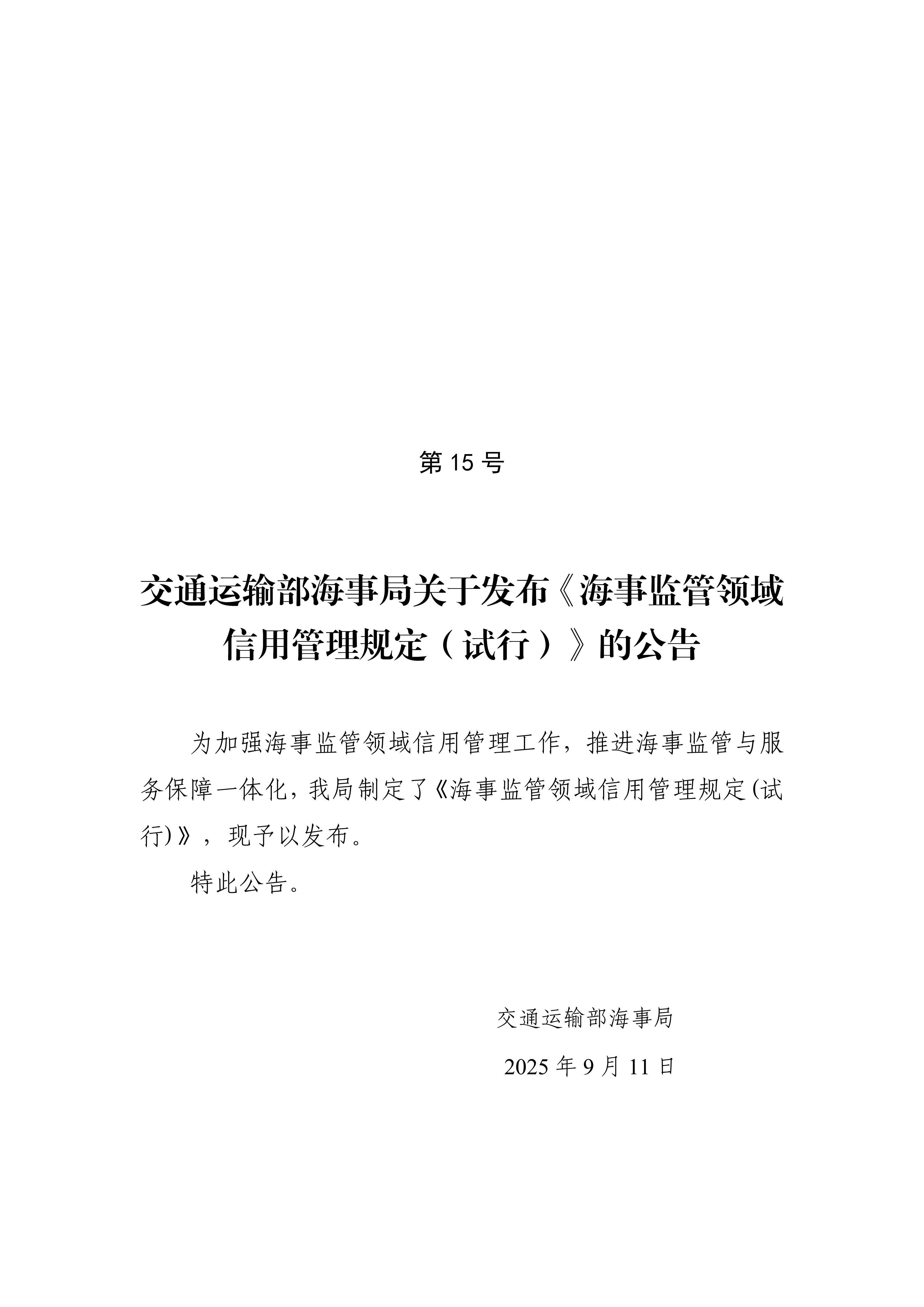 交通运输部海事局关于发布《海事监管领域信用管理规定(试行)》的公告